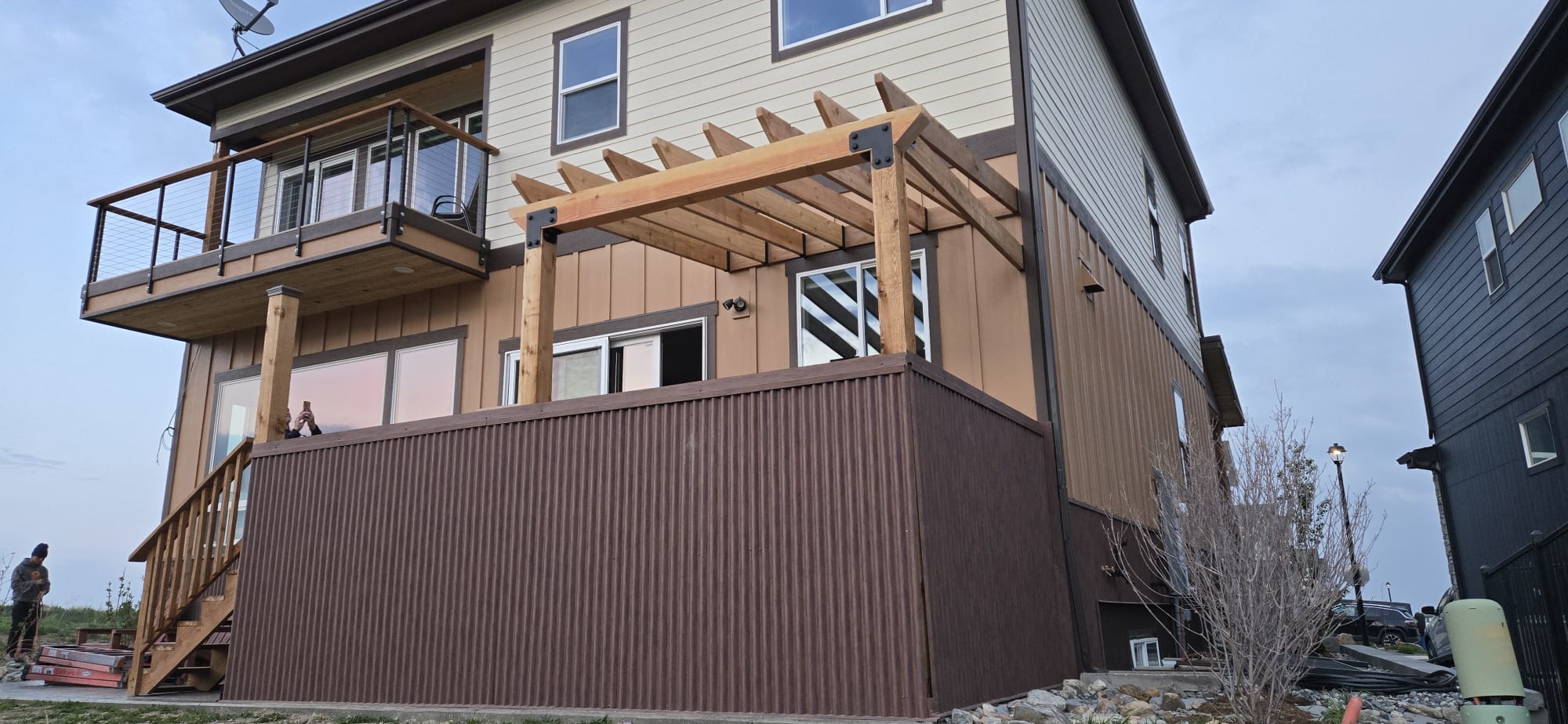 - Modern railing systems: stainless steel, glass, cable, or aluminum.