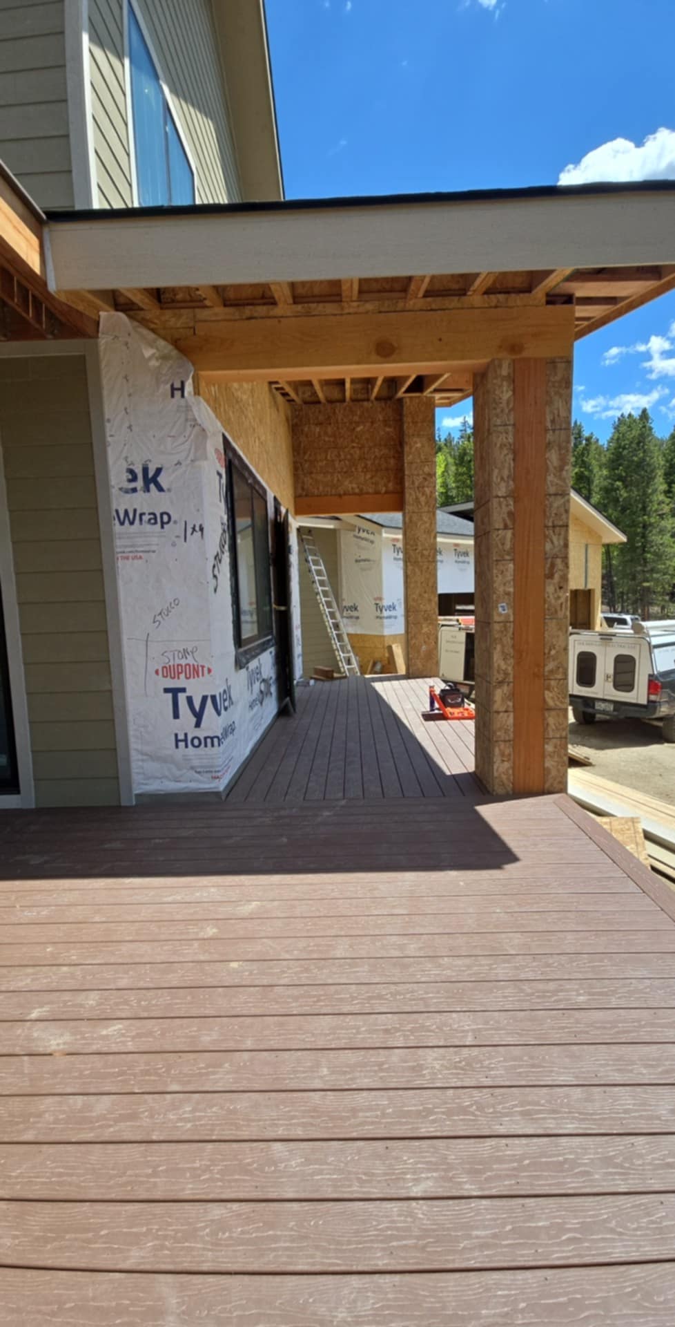 - Pressure-treated wood, Ipe, Cedar, or composite/PVC decking.
